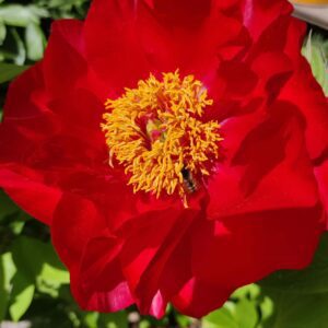 Red Charm on hybridipioni, joka ei juurikaan tuoksu, mutta on ulkomuodoltaan sitäkin näyttävämpi. Se kukkii aina selvästi ennen kiinanpioneja ja useasti avaakin suurikukkaisten pionien kukintakauden.