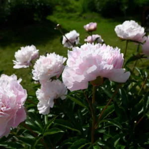 Kiinanpionit - (P. lactiflora, luktpion, ent. jalopioni) Pioneihin tutustujalle suosittelemme kiinanpioneja. Kiinanpioni on Suomen yleisin pionilaji. Kiinanpionien kukinta-aika riippuu kasvupaikasta. Se vaihtelee samankin puutarhan puitteissa. Lounais-Suomessa kukinta osuu keskimäärin juhannuksen ja heinäkuun alun välille. Lajikkeista riippuvat erot eivät ole suuria; myöhäiset kiinanpionit aloittavat kukinnan ennen kuin varhaiset lopettavat. Kiinanpionit ovat noin metrin korkeita ja lähes kaikissa on voimakas tuoksu. Kiinanpioni on pionilajeista vähiten herkkä liikakosteudelle, joten voimme suositella kiinanpioneja lähes pihaan kuin pihaan. Istutuspaikka saisi mieluusti kuitenkin olla kohopenkissä tai rinteessä.TAIMET & TOIMITUS