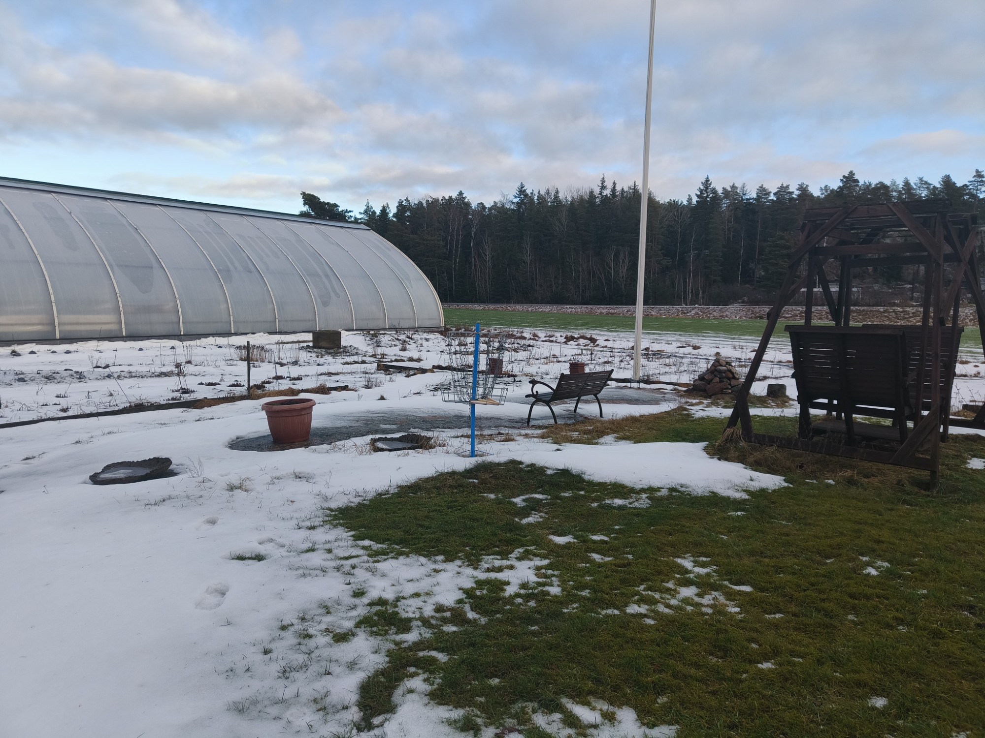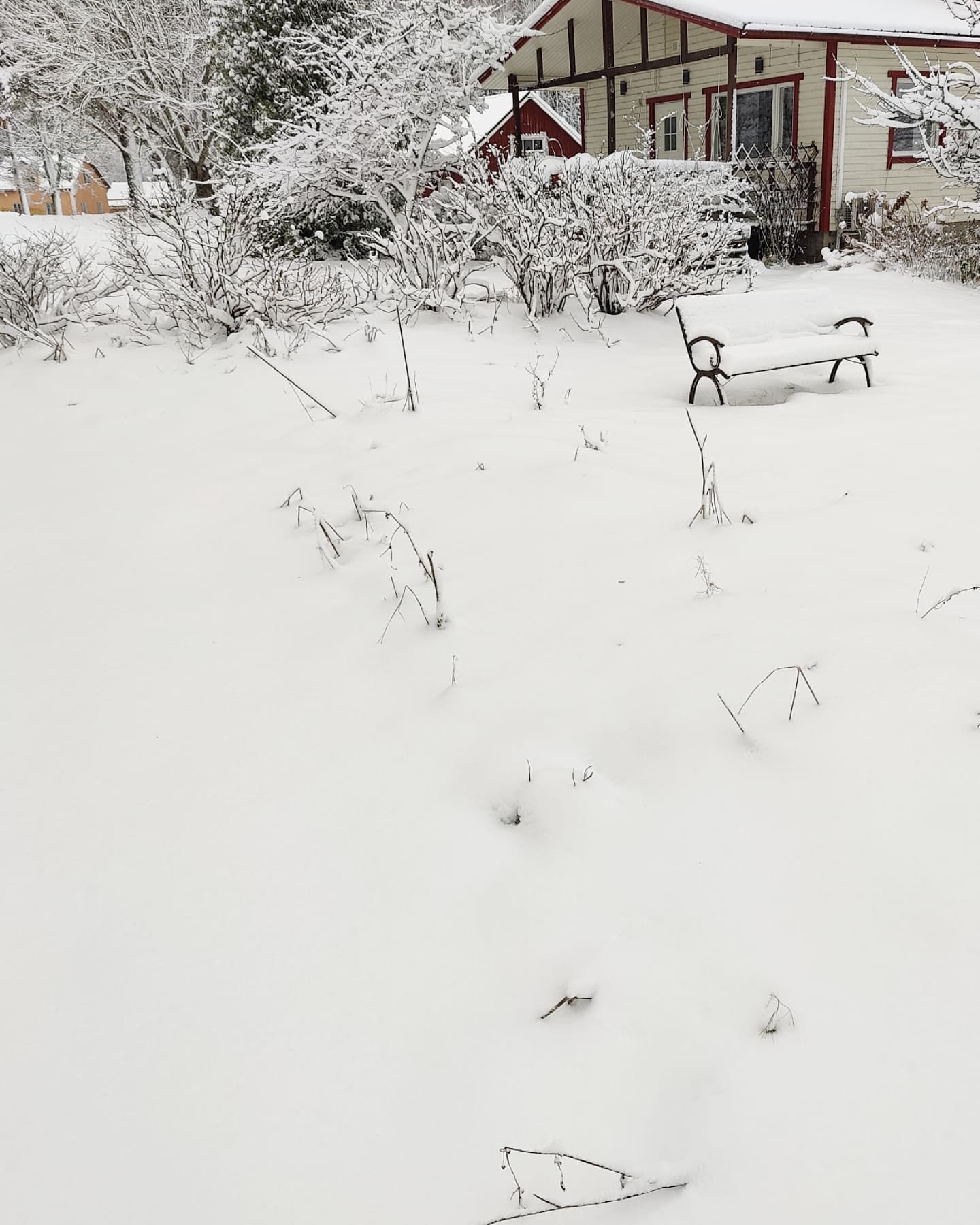 Lumi on useaan kertaan sulanut ja pieninä määrinä satanut uudelleen. Marraskuun 20 päivä saimme ihanan suhteellisen paksun lumipeitteen, mutta eihän se meillä pitkään pysynyt. Alla kuvapareja marraskuun 2024 lopulta ja kesältä 2024.
